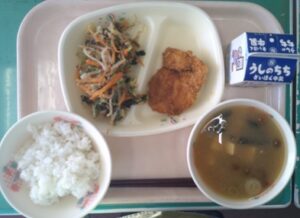 黒パン 牛乳 チキンごぼう 熊谷うどん みかん チキンごぼうは鶏肉のから揚げとごぼうのから揚げとポテトを甘辛のタレであえて 彩りに枝豆を散らしています。ごぼうに噛み応えがあり、よく噛んで食べてほしいおかずです。熊谷 […]