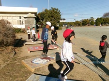 今日はとっても風が強い日だったのですが、全部の台を子ども達が使っていました。このなわとび台をつかって、たくさんとべるようになろうね!
