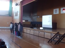 本日昼休みに、児童集会が行われ、給食委員会と放送委員会の2つの委員会による発表がありました。