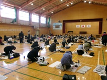 1月14日(水)、2時間目に1・2年生は教室で、2・3時間目に4~6年生は体育館で書きぞめ制作会を行いました。今までで一番良い字が書けるように集中して、一画一画丁寧に書いていました。
