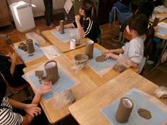 本日、講師の先生をお招きしての陶芸教室を行いました。初めて行う3年生は、準備からとてもウキウキしていました。動物や乗り物など、自分で決めたテーマに沿って集中して取り組みました。これから、粘土を焼いたり色を塗ったりします。完成がとても楽しみです。講師の先生、ありがとうございました。