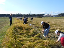 鎌を使い、一束一束丁寧に刈る作業はとても大変でした。しかし、子供たちはコツをすぐに覚えてどんどん稲を刈ることができていました。
