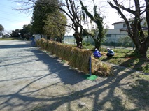 刈った稲は、現在校庭の鉄棒に吊るして乾かしています。次は脱穀を行います。次もみんなでがんばっていきましょう!!!