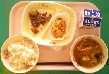 11月12日の給食 2025年11月12日 最終更新日時 : 2025年11月12日 江南北小職員 ごはん 牛乳 チキン香味焼き 突きコンとシメジのピリ辛炒め お芋のゴマみそ汁 今日は秋の味覚の里芋とさつま芋を使った「お芋のごまみそ汁」です。ゴマの香りとお芋の甘味で、おいしいみそ汁になりました。