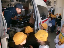 3年生が社会科見学で、熊谷市消防本部と県立嵐山史跡の博物館に行きました。消防署では出動の様子や消防車や救急車を実際に見て学びを深めることができました。また、博物館では、昔の暮らしの様子を実際に体験することができました。これからの社会の学習に生かしていきます。