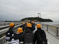 1日目は、鎌倉の小町通りからグループ行動をスタートしました。色々なお店を見て回ったり、お店で昼食を食べたり、お土産を買ったりしながら、散策を楽しみました。その後、高徳院へ向かい鎌倉大仏を見学しました。江の島では、新江ノ島水族館へ行き、イルカのショーを見たり、お土産を買ったり、生き物を見学したりしながら楽しみました。宿へは江の島大橋を歩いて渡り、向かいました。わくわくと胸を躍らせて一日を締めくくりました。