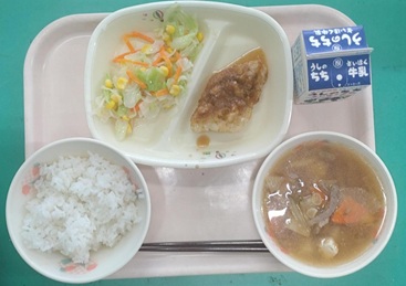 10月1日の給食 2025年10月1日 最終更新日時 : 2025年10月1日 江南北小職員 牛乳 ごはん 白身魚の南蛮漬け たくあんサラダ 豚汁 今日の白身魚は「タラ」というお魚です。筋肉のもとになるたんぱく質が多く含まれる「赤の食べ物の仲間」です。