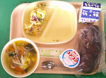 12月2日の給食 2025年12月2日 最終更新日時 : 2025年12月2日 江南北小職員 ココア揚げパン 牛乳 スイートポテトサラダ 白菜と肉団子のスープ ヨーグルト 今日は、みなさんの大好きなココア揚げパンの献立です。
