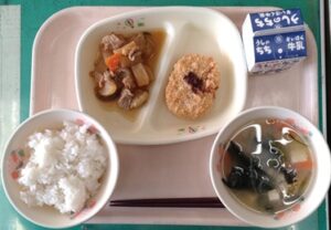 コーヒーミルク ライスボールパン 鶏肉のマスタード焼き コーンコロッケ 花野菜サラダ プチリンゴゼリー 今日は縦割り給食です。自分の空のお弁当箱に給食を詰めて、縦割り班に分かれて食べます。風が強くて教室内で喫食となり […]