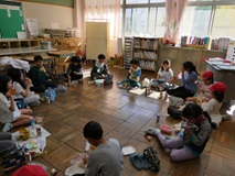 16日(水)に、1年生を迎える会がありました。 4年生が持つアーチを通って6年生と一緒に入場した1年生。 5年生から、お祝いのペンダントをもらいました。 全校で「じゃんけんゲーム」をし、たくさん盛り上がりました。